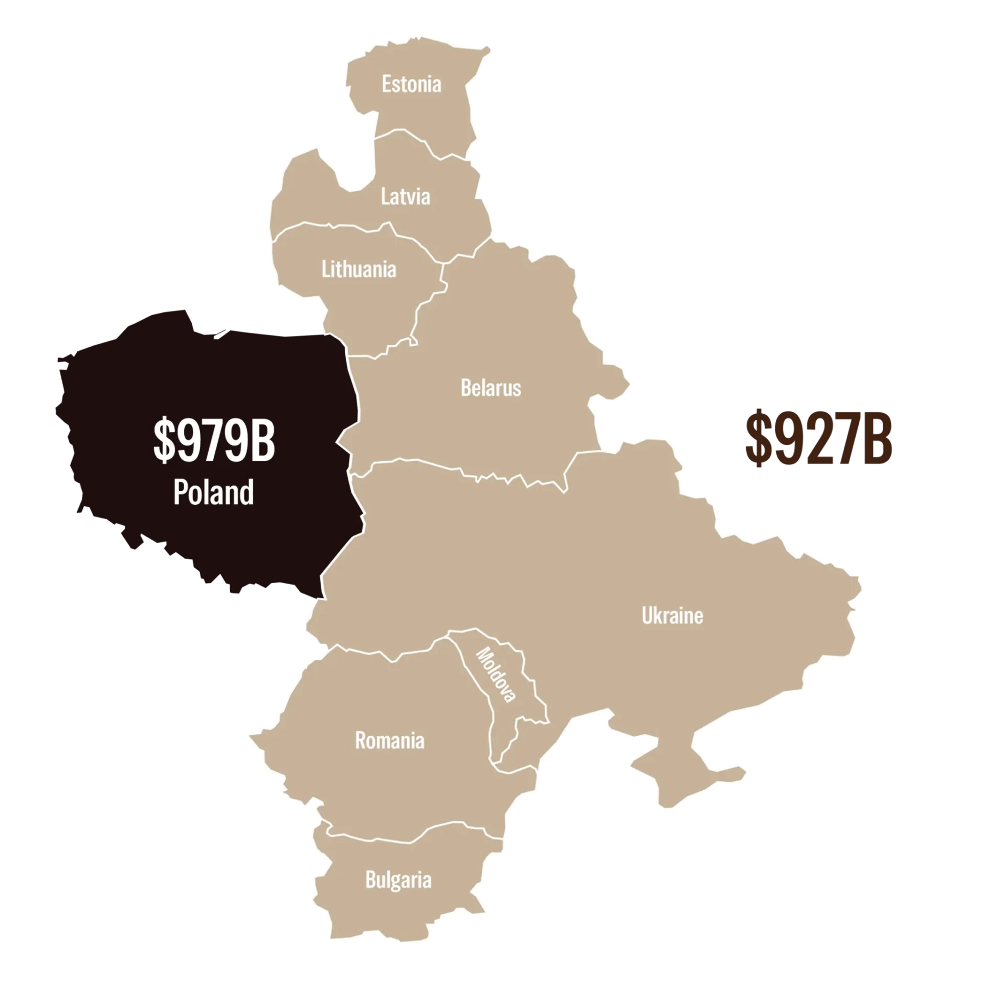 Poland has a population of 38.1 million and a GDP per capita of $28,600, which is higher than the combined population of all 77 million people in the Eastern Bloc countries.
